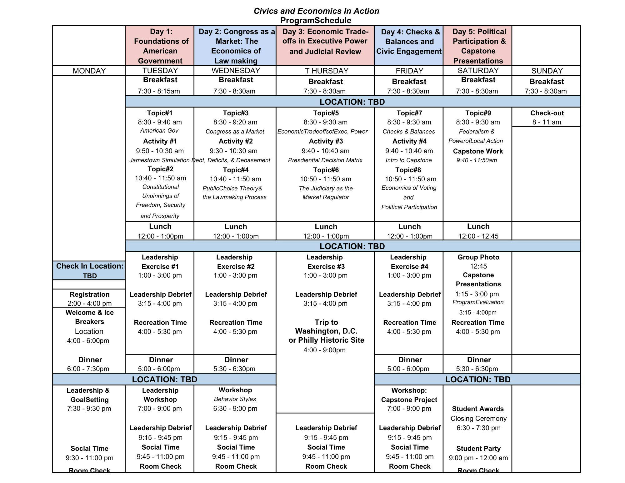 Civics & Economics in Action is a comprehensive, residential experience with a single program fee that covers instruction, housing, meals, an all program activities. Substantial scholarship support is available to significantly reduce the cost of participation.